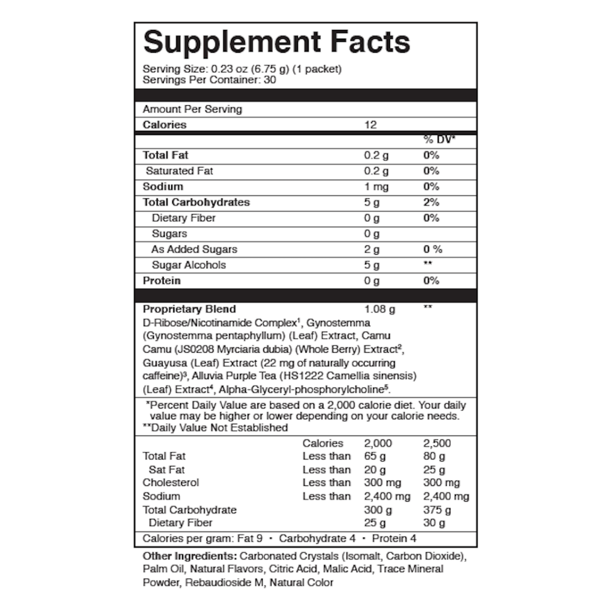 - Guayusa (Ilex guayusa) (Leaf) Extract (22 mg of naturally-occuring caffeine).